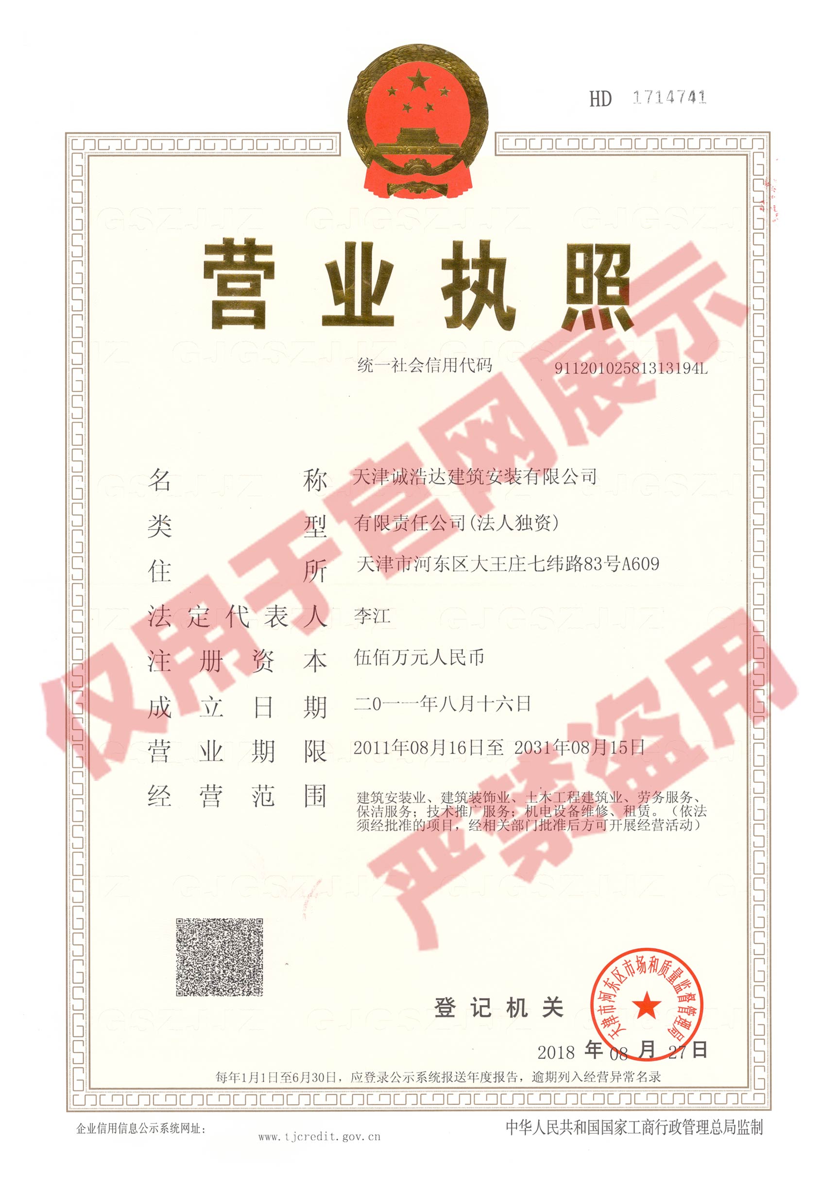 公司經(jīng)營(yíng)范圍為:建筑安裝業(yè)、建筑裝飾業(yè)、土木工程建筑業(yè)、勞務(wù)服務(wù)、保潔服務(wù);技術(shù)推廣服務(wù);機(jī)電設(shè)備維修、租賃。(依法須經(jīng)批準(zhǔn)的項(xiàng)目,經(jīng)相關(guān)批準(zhǔn)后方可開展經(jīng)營(yíng)活動(dòng))