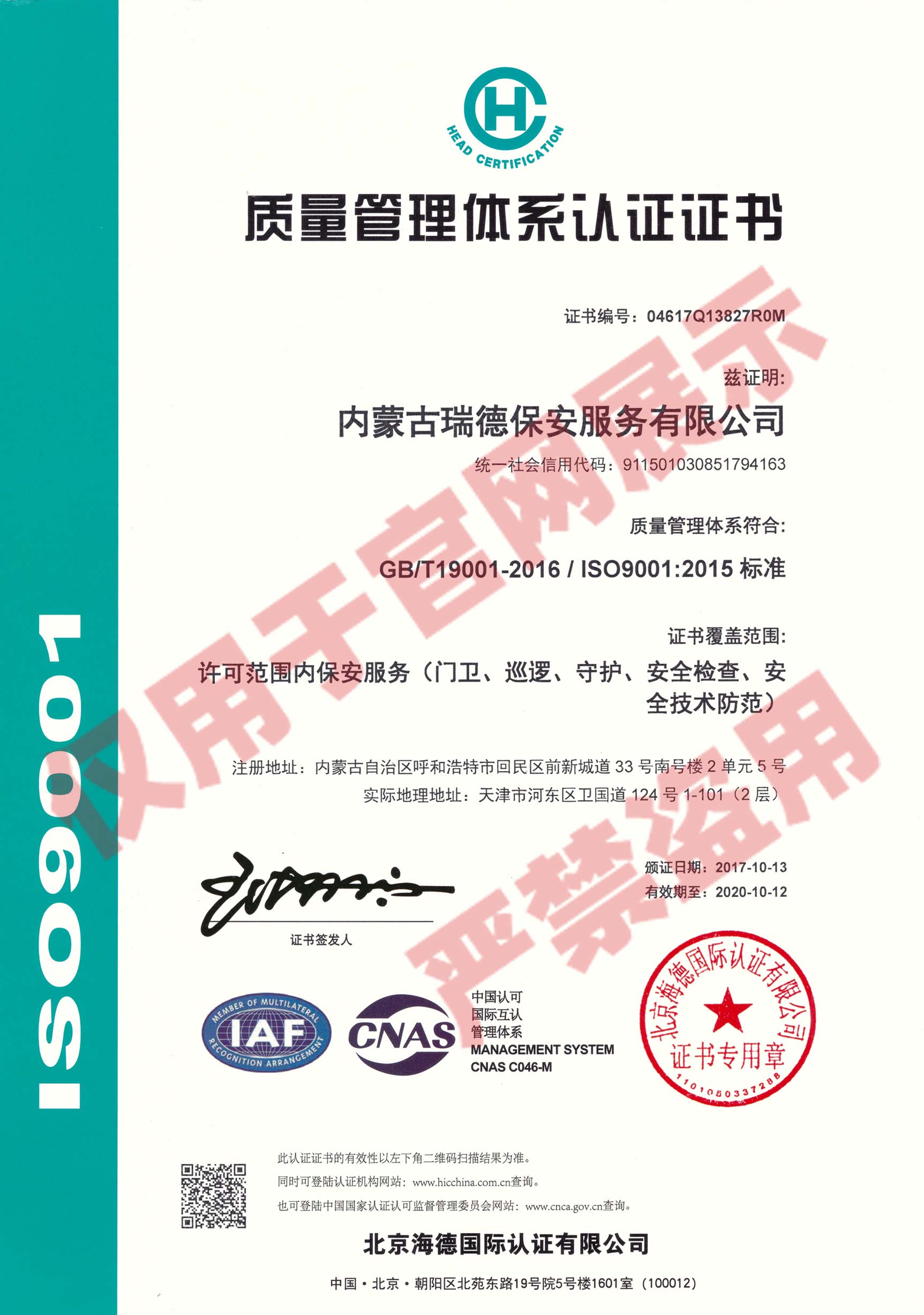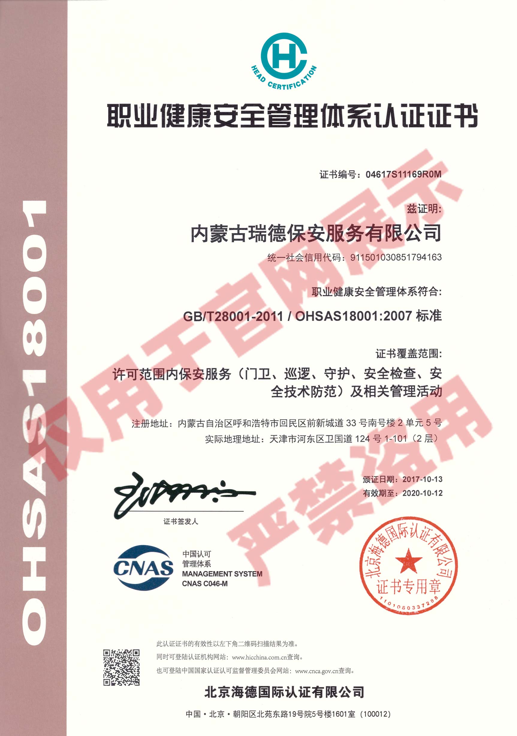 公司與2014年9月通過OHSAS18001安全體系認(rèn)證,ISO19001質(zhì)量體系認(rèn)證、ISO14001環(huán)境體系認(rèn)證三貫標(biāo),并于2017年通過中國核工業(yè)集團(tuán)合格供應(yīng)商資格認(rèn)證。服務(wù)項目遍及全國26個省市、自治區(qū),近年來為適應(yīng)公司全球化發(fā)展戰(zhàn)略承接了巴基斯坦、委內(nèi)瑞拉、馬來西亞、伊拉克、白俄羅斯等海外大中型火力發(fā)電廠的安保服務(wù)。