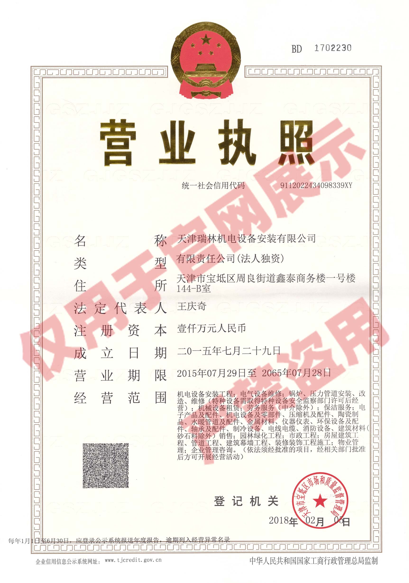 天津瑞林機電設備安裝有限公司于2015年7月注冊成立于環渤海地區經濟中心天津,注冊資金為人民幣1000萬元,現有員工300人,其中中高級技術職稱人數30人,業務涉及機電設備安裝、管道安裝、鍋爐和壓力管道安裝、改造、維修等諸多領域。
