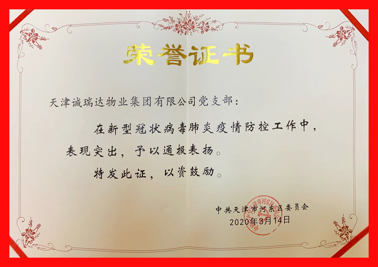 誠瑞達(dá)集團(tuán)黨支部在新型冠狀病毒肺炎疫情防控工作中表現(xiàn)突出,榮獲河?xùn)|區(qū)委通報(bào)表揚(yáng)